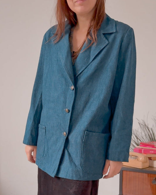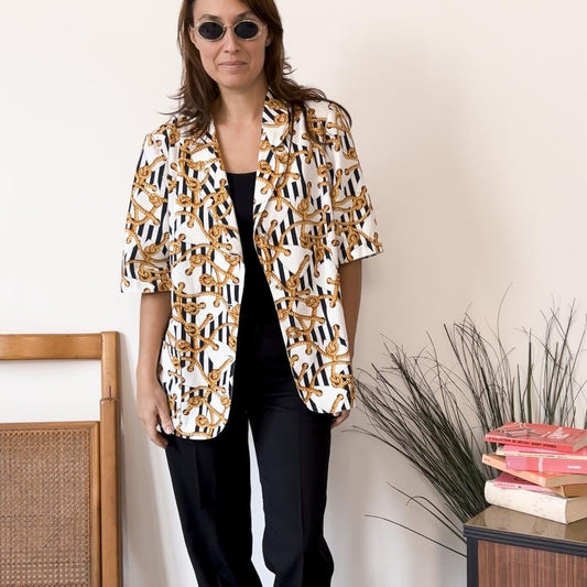 Blazer vintage elegante cerimonia cotone fantasia marina