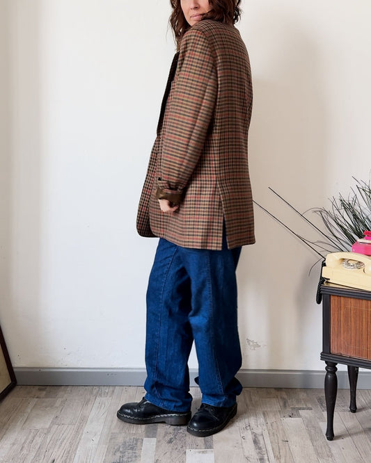Blazer oversize donna in lana scozzese con dettagli rossi