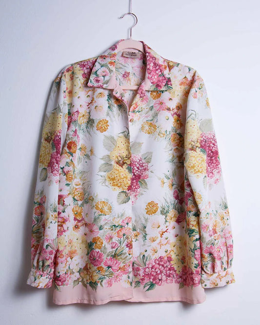Blusa vintage in seta floreale anni 80 – Taglia M