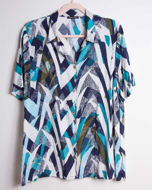 Camicia vintage donna oversize – fantasia astratta – Made in Italy anni ‘90