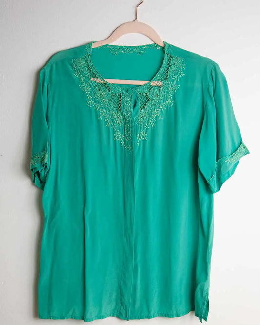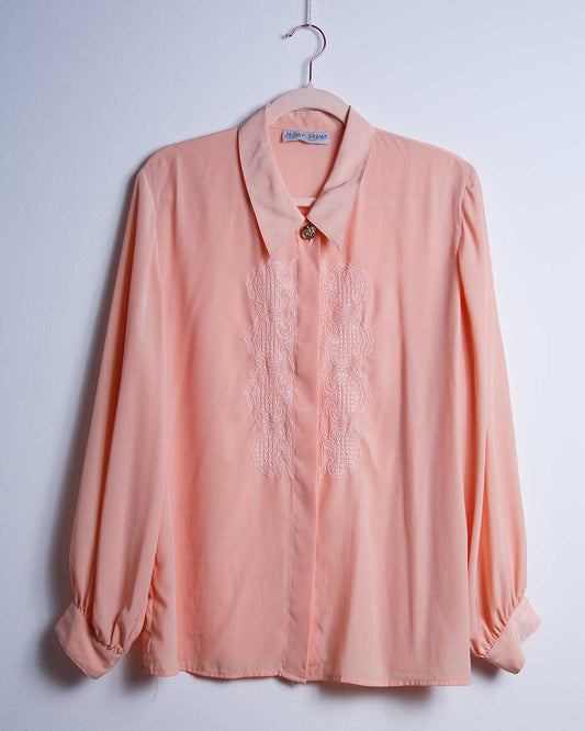 Camicia vintage pesca Alba Fornari ricamo centrale – taglia M