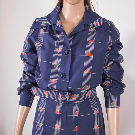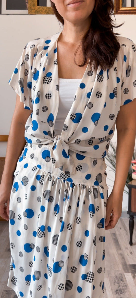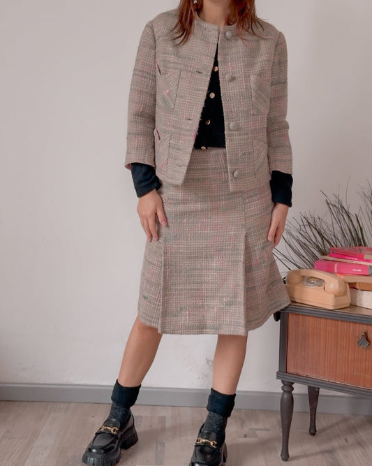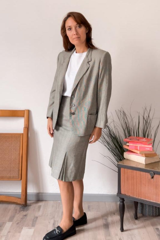 Completo vintage blazer e gonna in lana e seta pied de poule toni del grigio