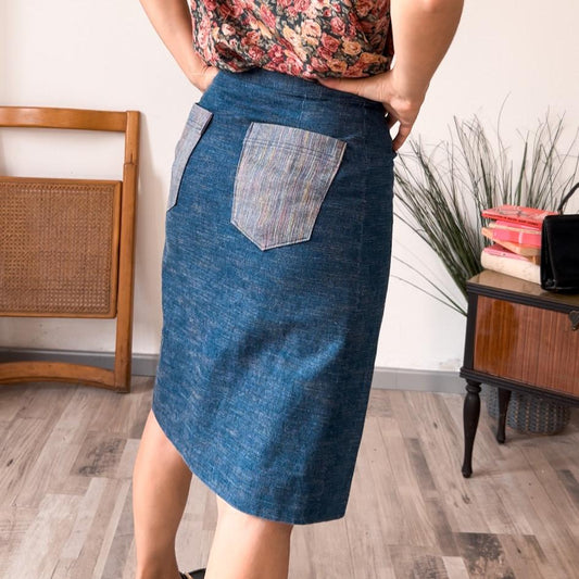 Gonna vintage corta con tasche patchwork anni 90 – Taglia M
