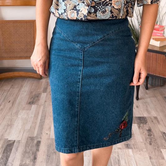 Gonna Vintage in Jeans con Dettaglio di Rosa