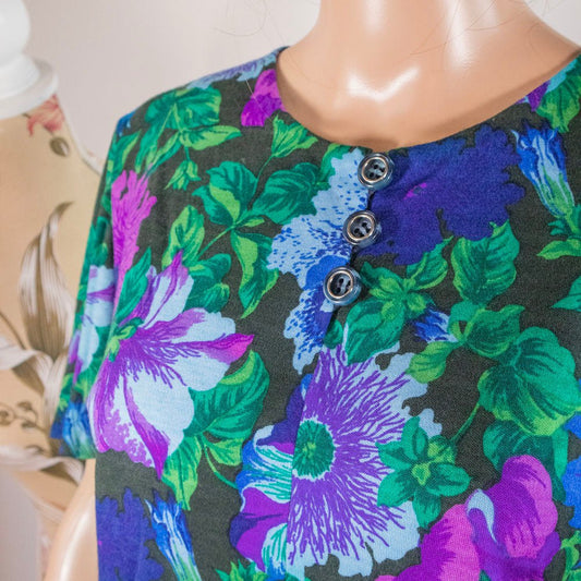 Maglia floreale vintage tessuto Falconetto blu verde viola