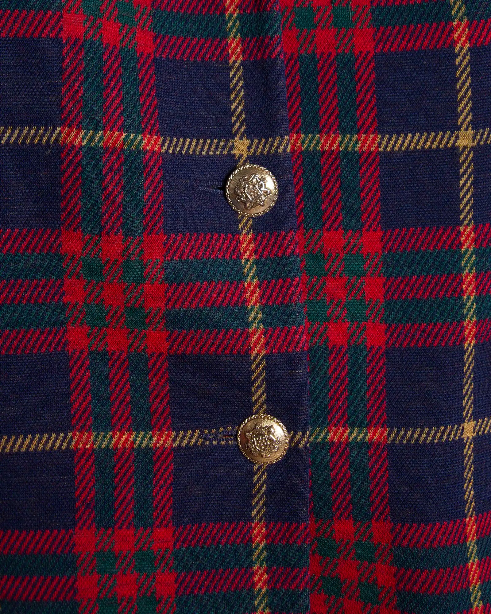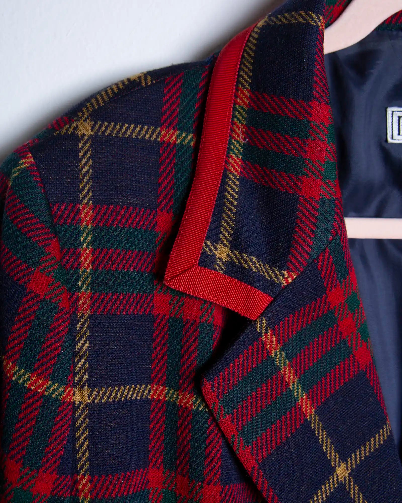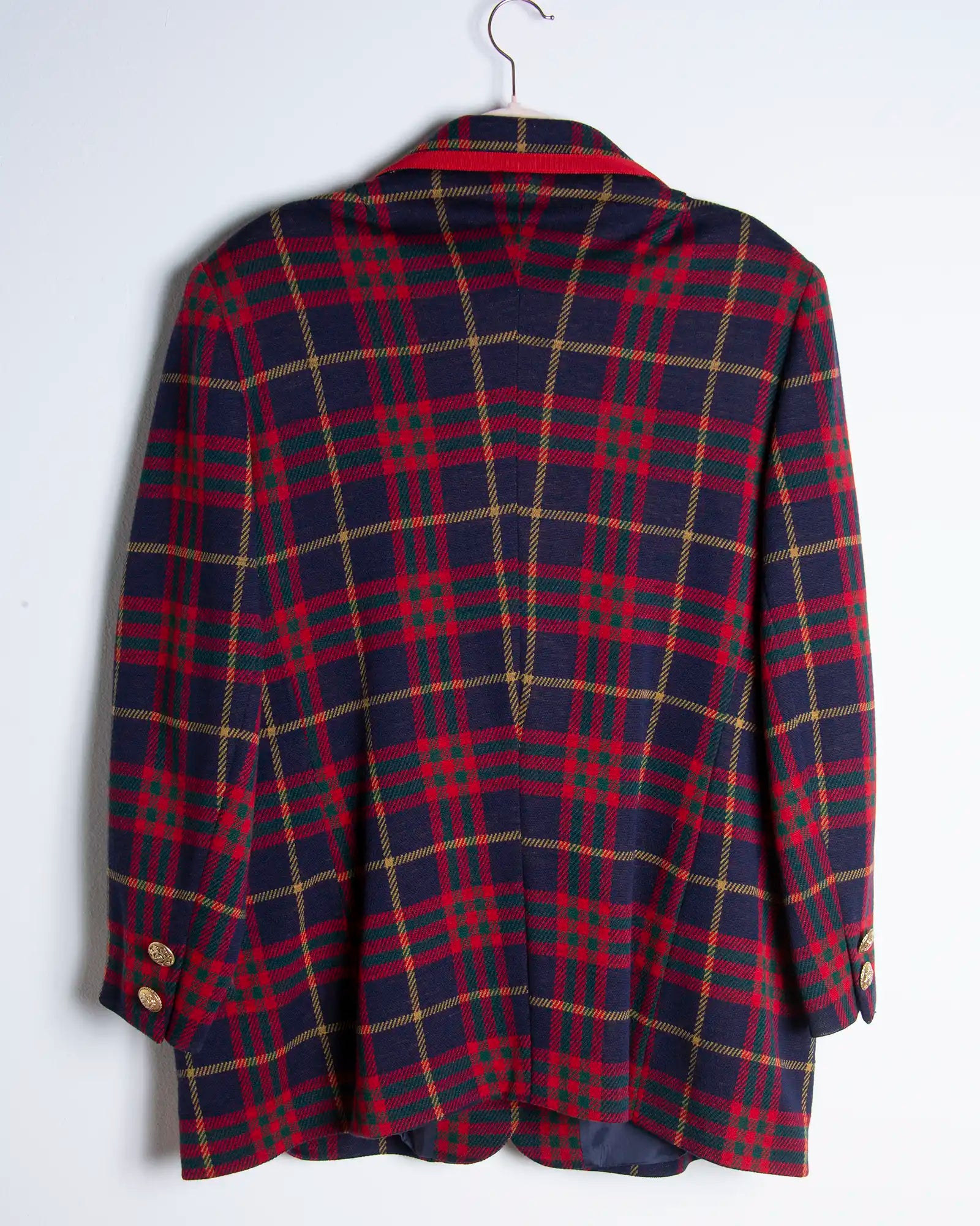 Blazer oversize donna in lana scozzese con dettagli rossi