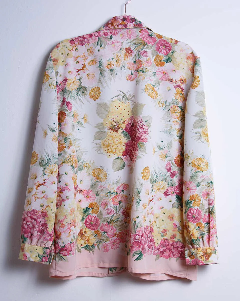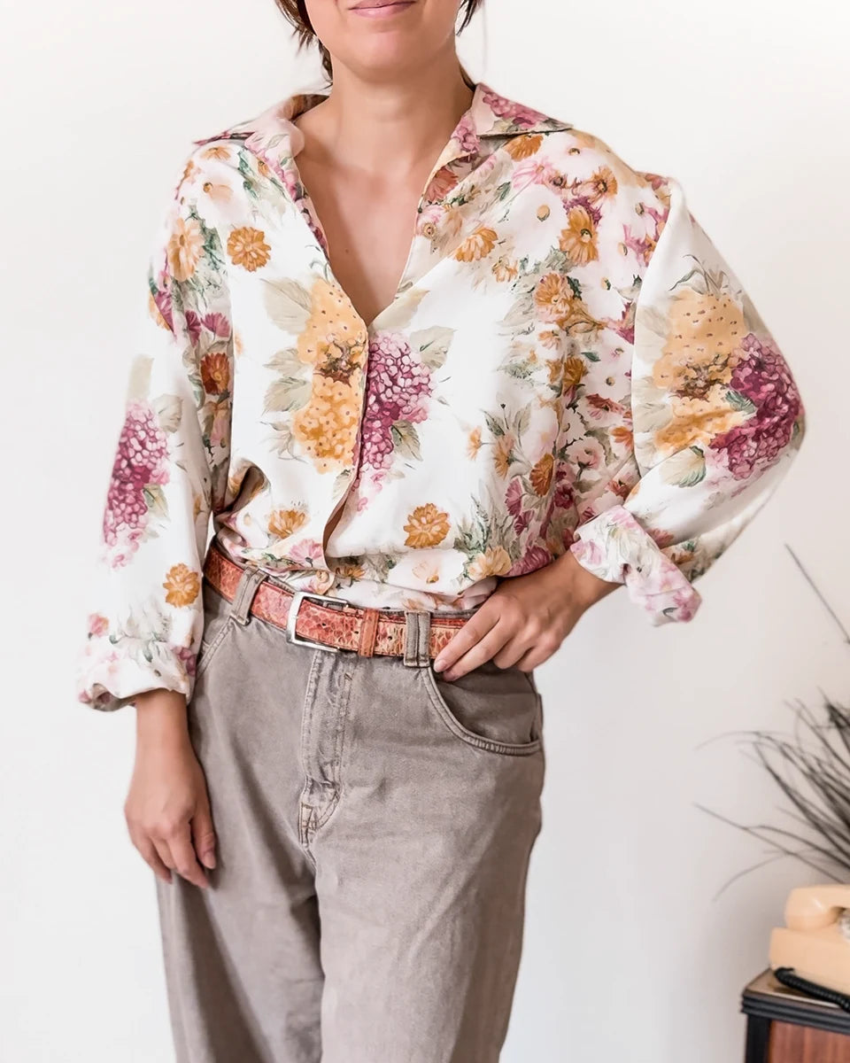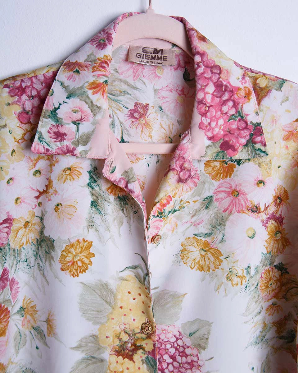 Un capo unico, leggero e perfetto per chi ama vestirsi bene... ma con leggerezza. La camicia vintage floreale anni '80 è un passepartout romantico, ironico e decisamente cool.